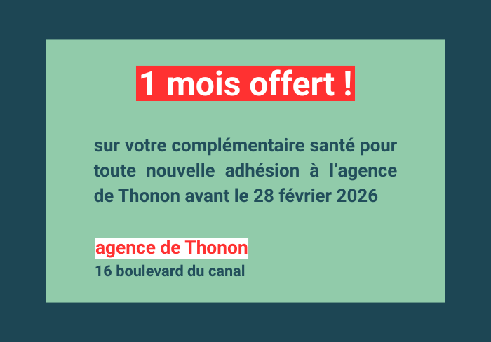 À l'occasion de l'ouverture de l'agence de Thonon, nous vous offrons votre premier mois de cotisation pour toute nouvelle adhésion à notre complémentaire santé avant le 28 février.